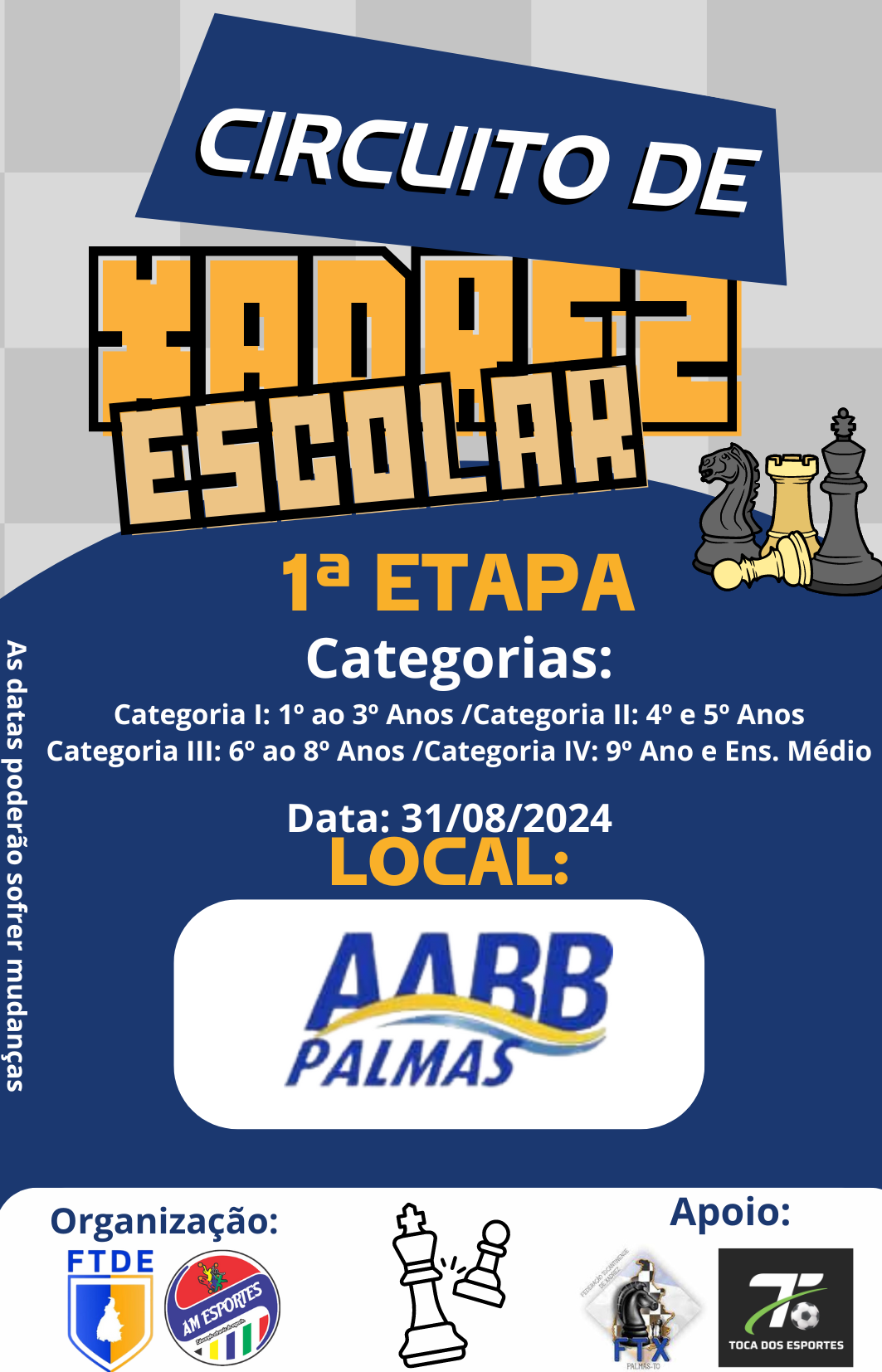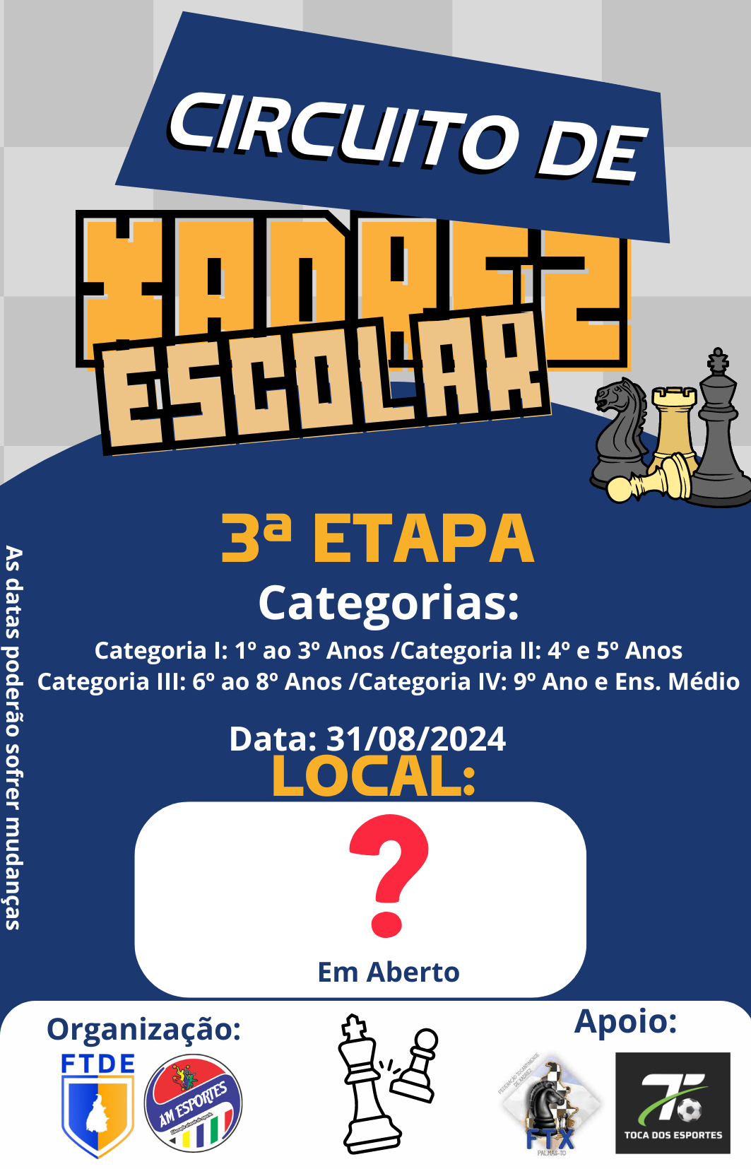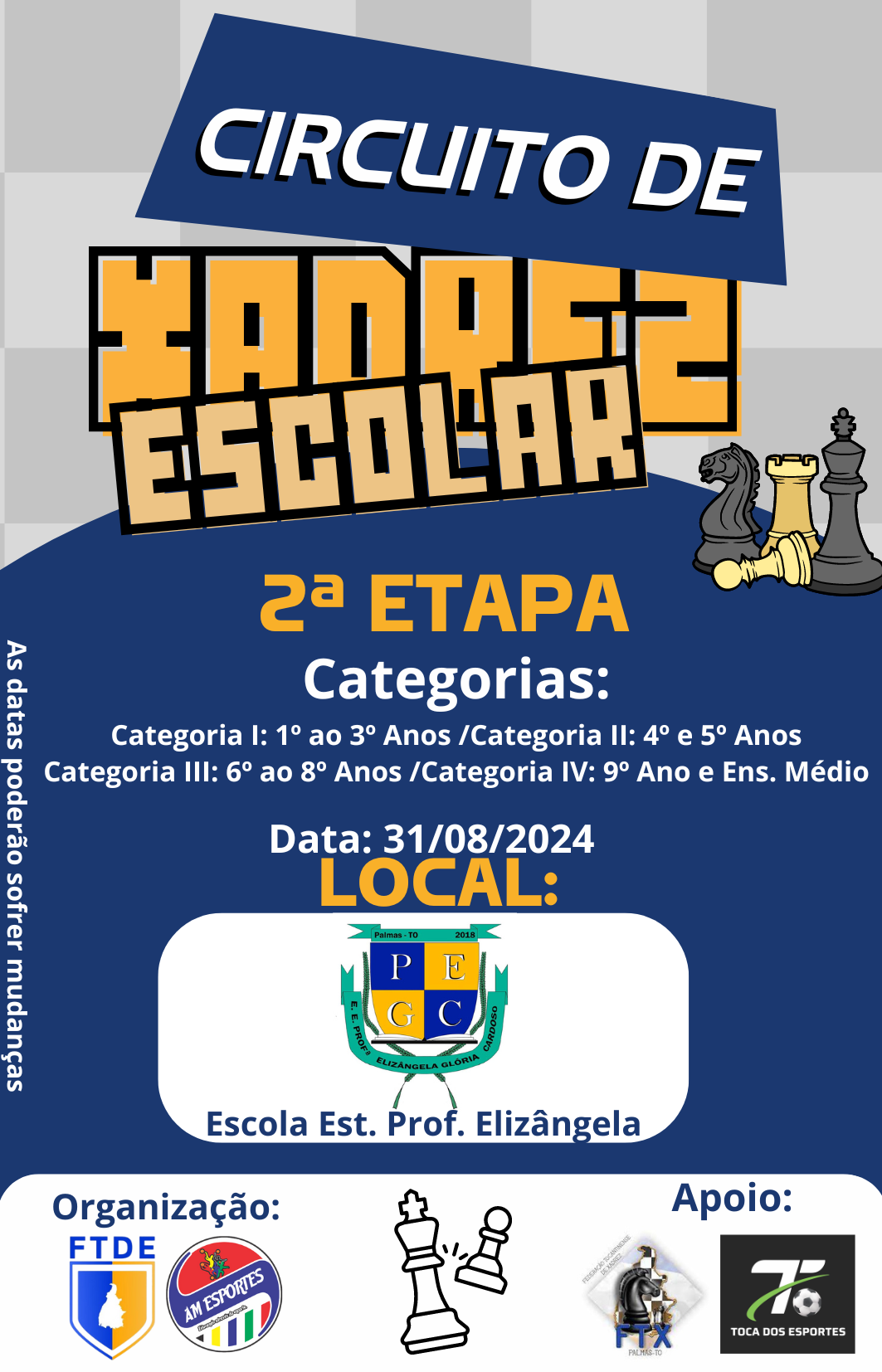 2ª Edição do Circuito de Xadrez Escolar FTDE/AMESPORTES, divididos em 4 etapas e uma final. O evento acontece em 4 categorias, sendo: