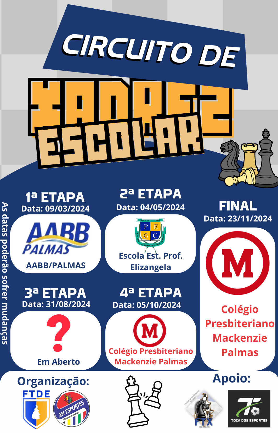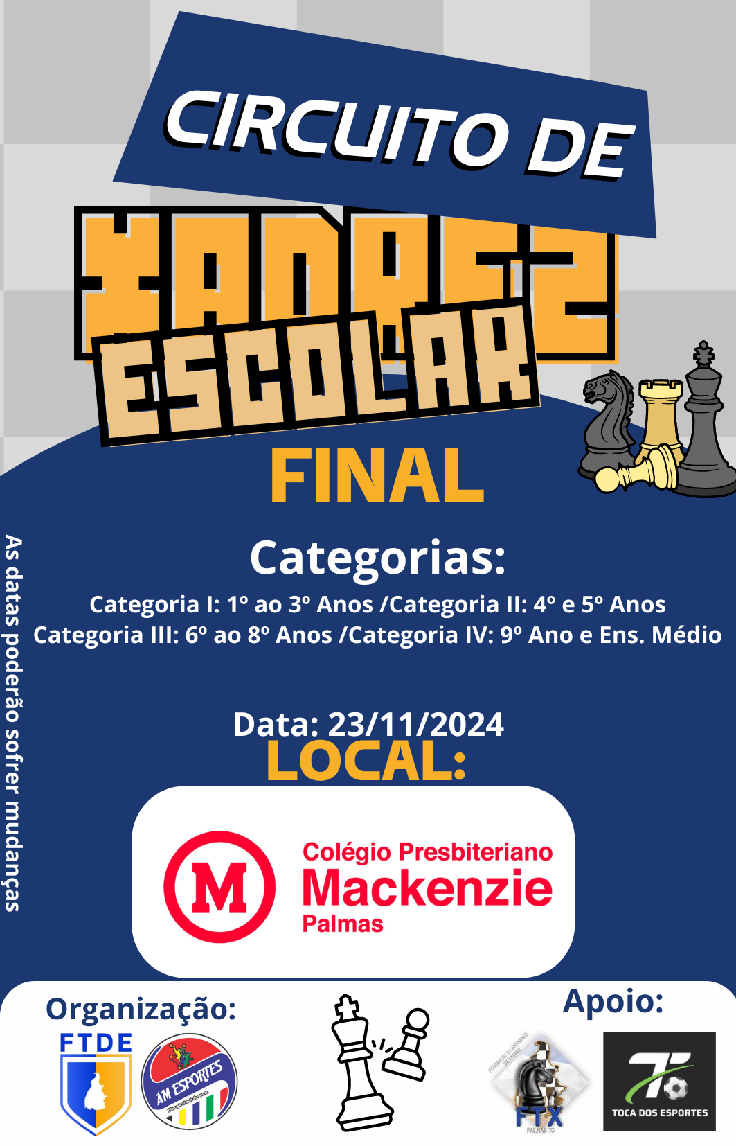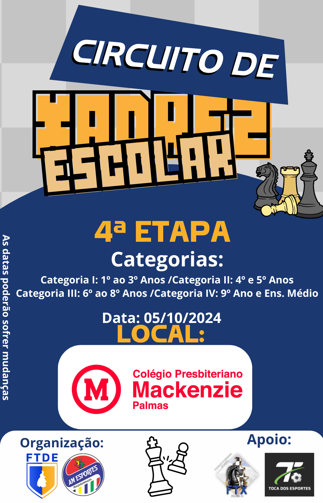 2ª Edição do Circuito de Xadrez Escolar FTDE/AMESPORTES, divididos em 4 etapas e uma final. O evento acontece em 4 categorias, sendo: